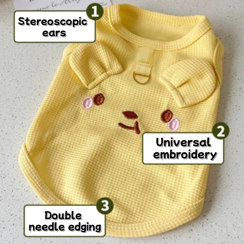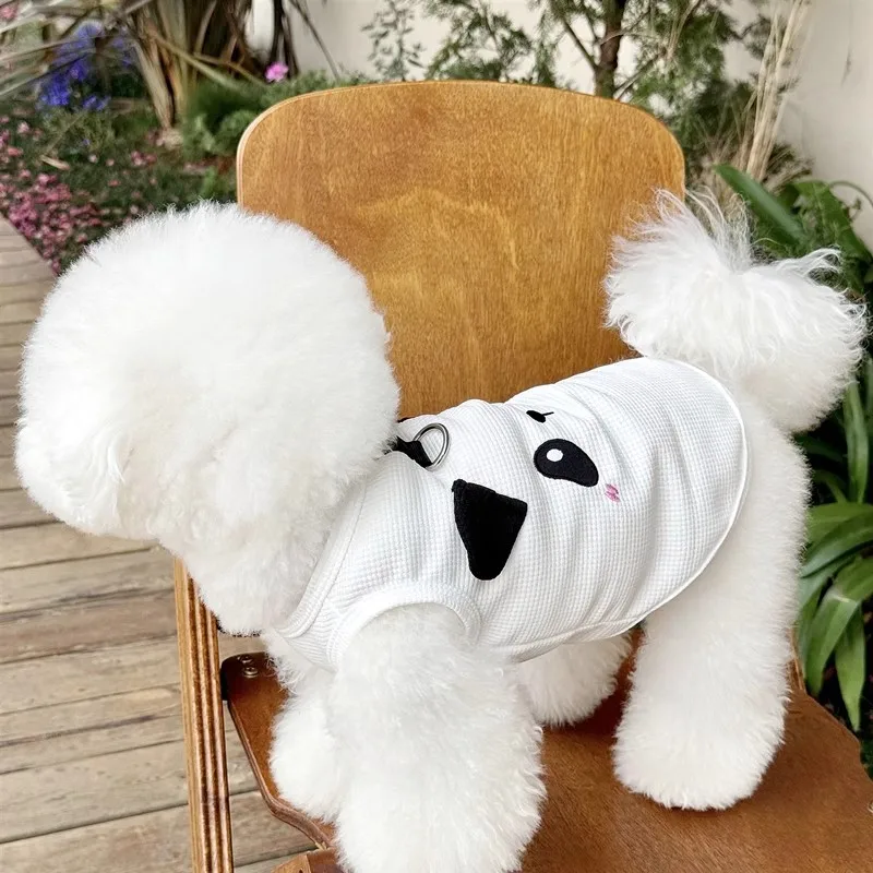 Su diseño con bordado de animal le da un toque tierno y moderno, mientras que su corte ergonómico proporciona un ajuste natural que no bloquea el pelaje ni limita el movimiento. Es fácil de poner y quitar, ideal para uso diario en perros pequeños, medianos y gatos.Perfecto para cachorros y razas como Poodle, Bichón, y mascotas que necesitan ropa ligera en verano.
