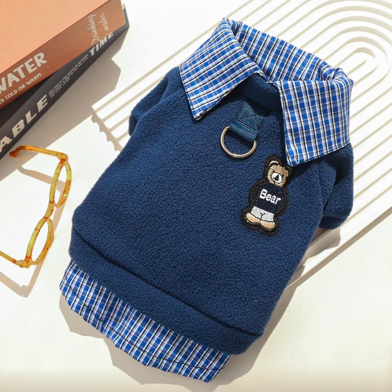 Sudadera cálida y moderna para perros y gatos, ideal para la temporada de otoño e invierno. Su diseño a cuadros con estampado de osito brinda un estilo adorable y a la moda, perfecto para paseos diarios o uso casual.